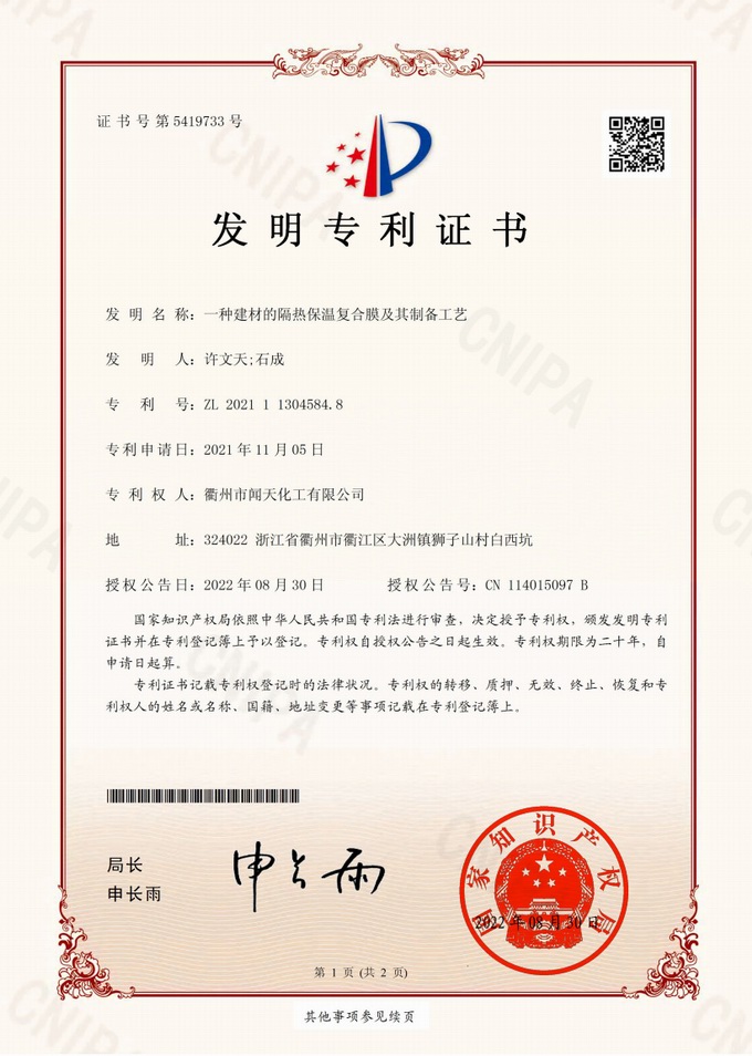 衢州市聞天化工有限公司成立于2003年,是國內研發(fā)、生產氟碳涂料的企業。衢州傳褀防水防腐工程科技有限公司作為其下屬公司,專業承接各類防水防腐項目。企業經過20年的市場磨練,已在鋼構防腐領域、建筑屋面和屋面修繕、防水隔熱領域、建筑外立面的防水隔熱裝飾領域及戶外竹木防腐領域形成了自己獨特的產品體系和個性化解決方案。公司經過多年的努力,已獲得了多項國家發(fā)明專利和新產品科技成果,并參與了中國建筑材料流通協會組織的《房屋修繕防水工程規(guī)范》的編制,中建協涂裝委員會浙西工作站設立在我公司。公司的產品有一個共同的特點,就是經久耐用,使用年限超長。鋼構防腐的效果是其他材料的三到五倍使用壽命;屋面防水隔熱的效果是其他材料的三到五倍的使用壽命;建筑外立面的效果是既防水又隔熱保溫,既美觀又不褪色;戶外竹木防腐的效果更是其他材料五倍以上的壽命。